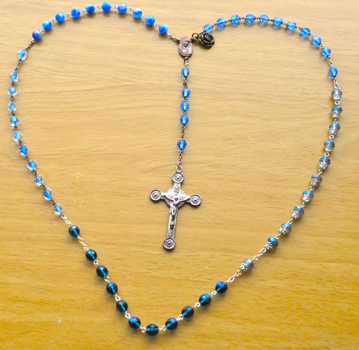 Lourdes, France (light round), Guadalupe, Mexico (cap), La Salette, France (navy), Medjugorje, Yugoslovia (tri cone), Paris, France (marble).