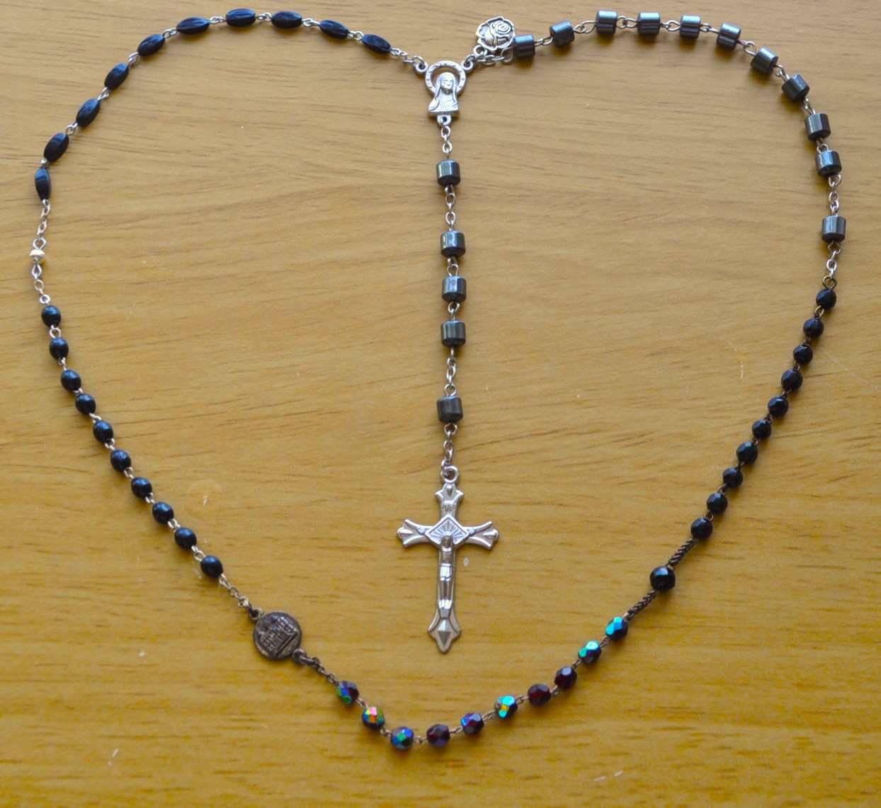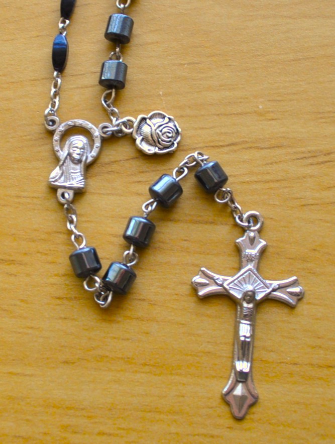 Rome, Italy (hematite), Lourdes, France (square), Fatima, Portugal (faceted), Paris, France (round), La Salette, France (barrel).