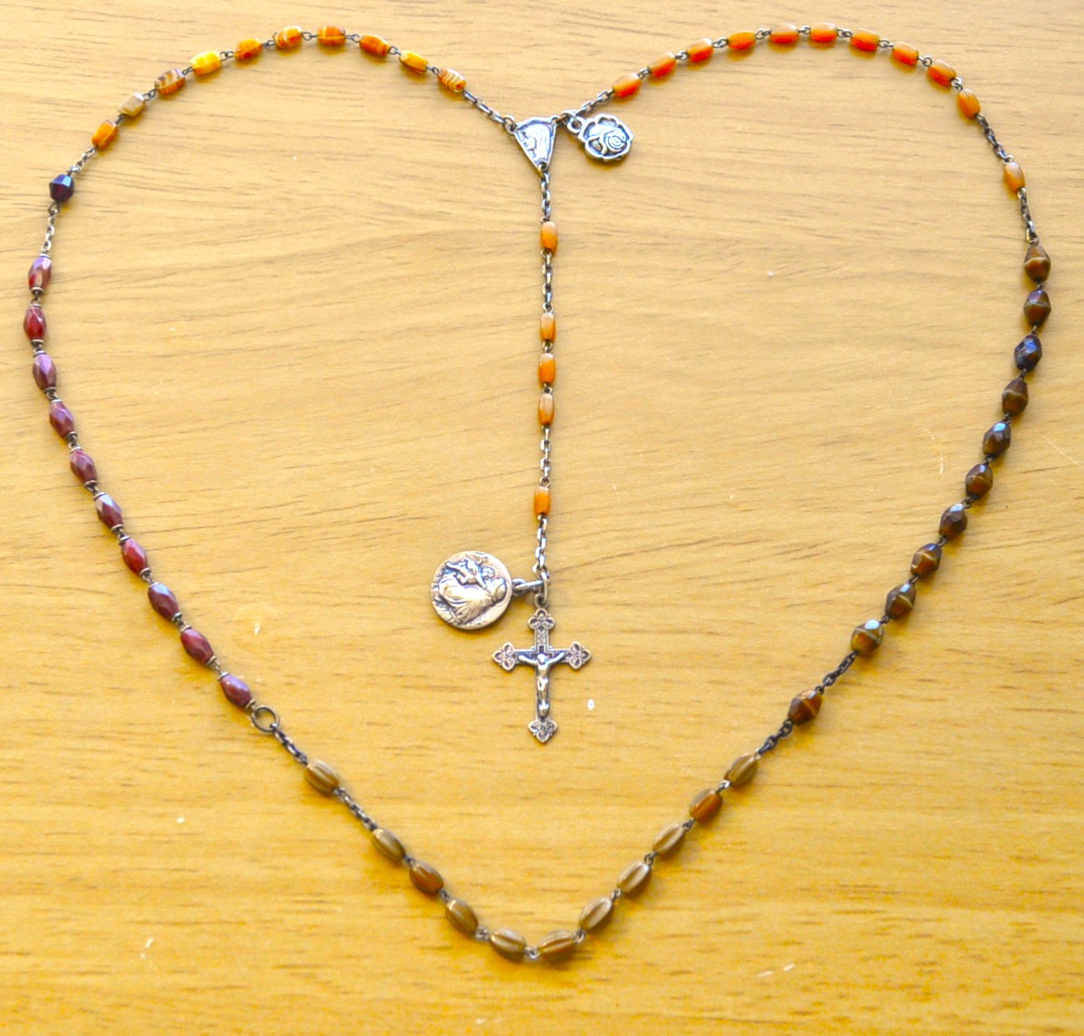 La Salette, France (tan), Rome, Italy (large dark), Gietrzwald, Poland (lined), Paris, France (dark), Lourdes, France (two tone).