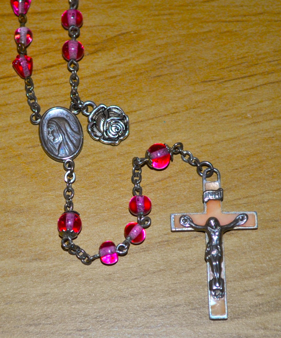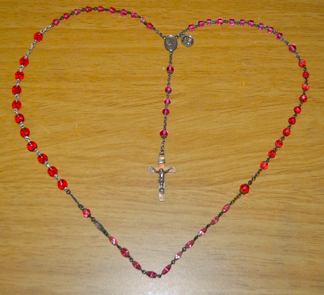 La Salette, France (clear), Fatima, Portugal (small faceted), Lourdes, France (barrel), Medjugorje, Yugoslovia (large faceted), Rome, Italy (tri cone).