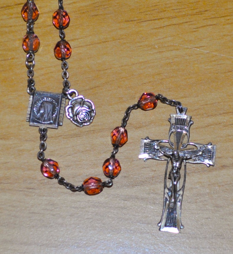 La Salette, France (dark round), Lourdes, France (tri cone), Paris, France (matt), Rome, Italy (capped tri cone), Banneux, Belgium (light round).