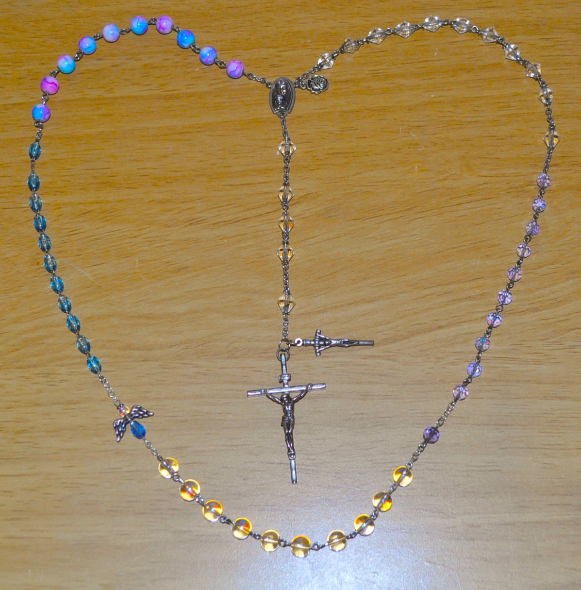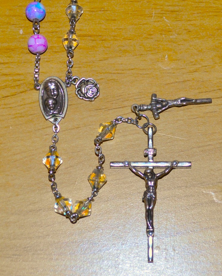 Rome, Italy (diamond), Paris, France (purple), Guadalupe, Mexico (clear round), La Salette, France (blue), Lourdes, France (multi).