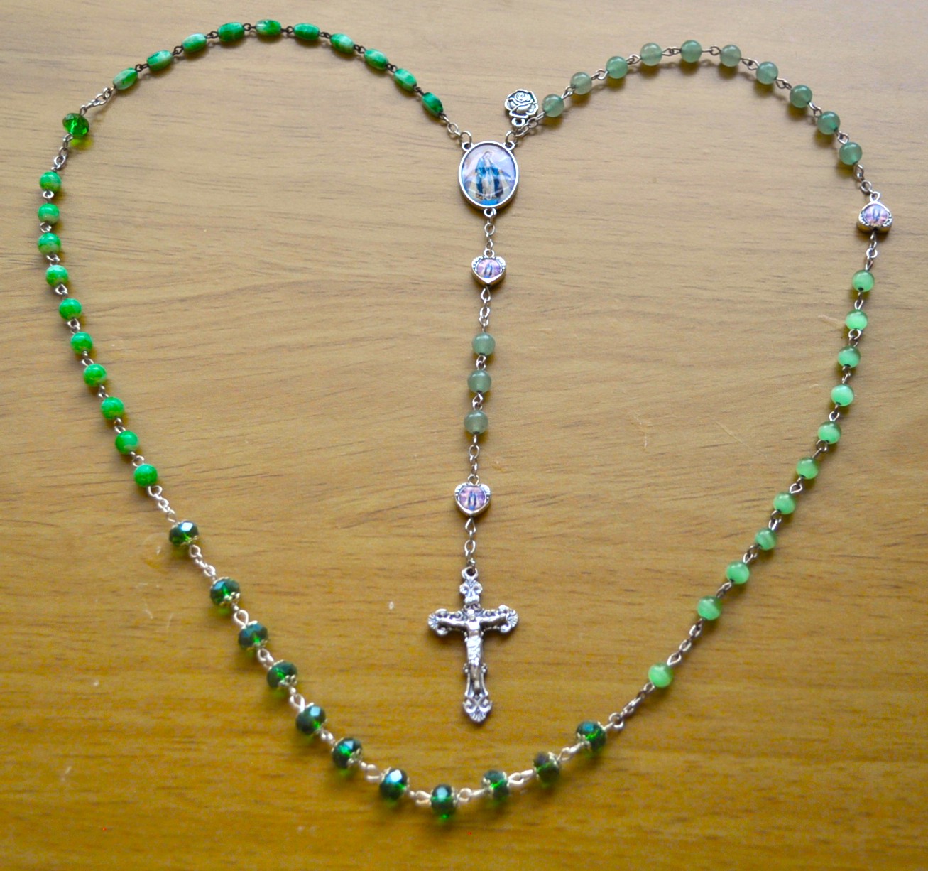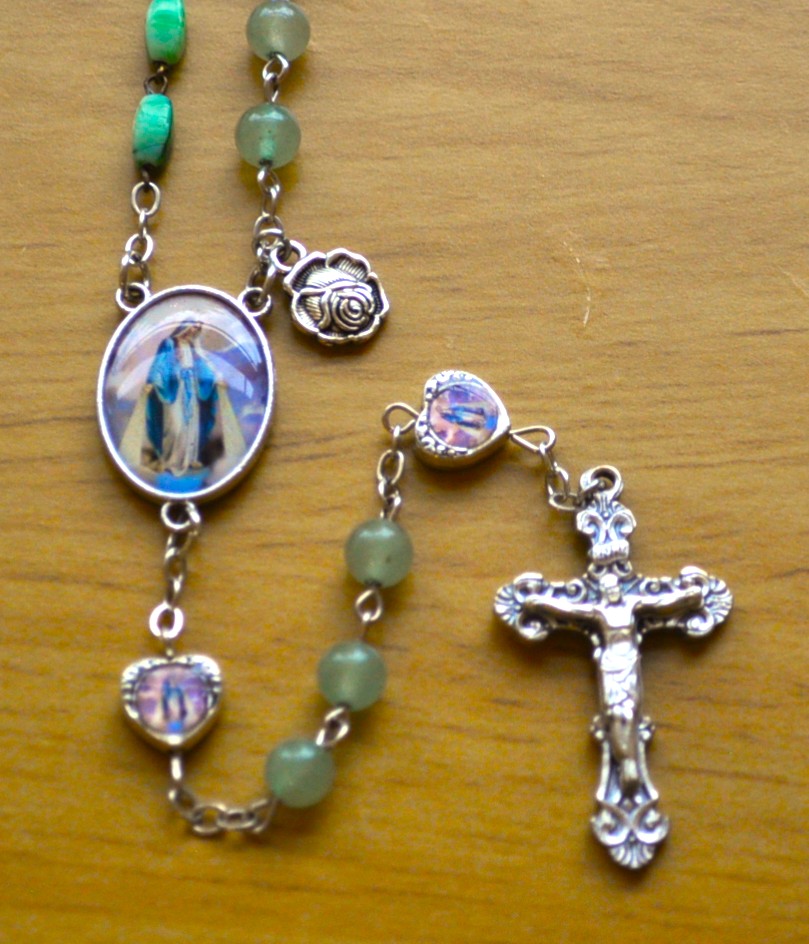 Paris, France (clear), Rome, Italy (cats eye), Guadalupe, Mexico (capped), La Salette, France (marble), Fatima, Portugal (barrel).