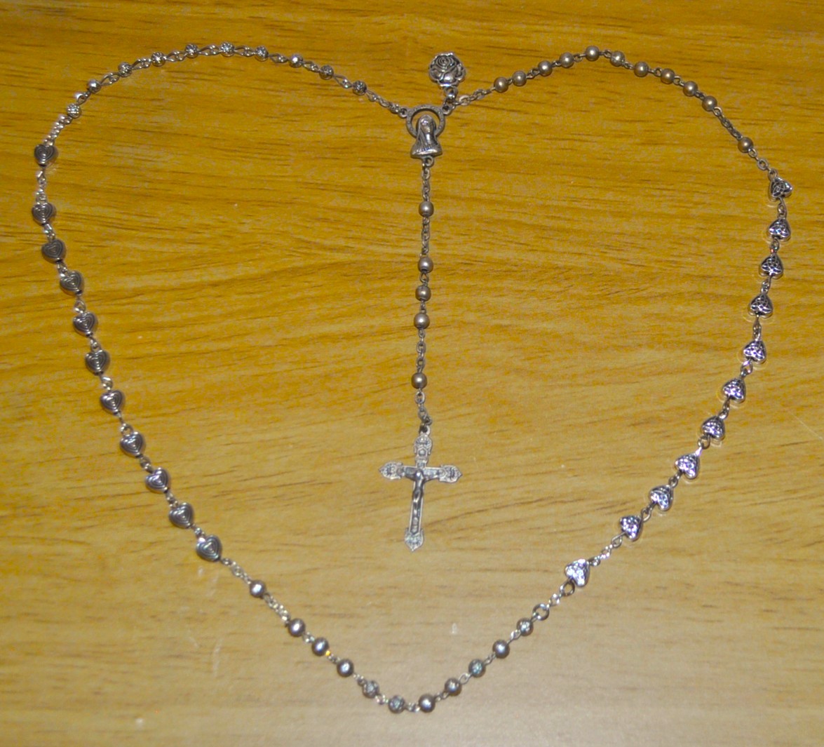 Rome, Italy (round), Fatima, Portugal (celtic), Medjugorje, Yugoslovia (small rose), Lourdes, France (lined heart), Paris, France (flower).