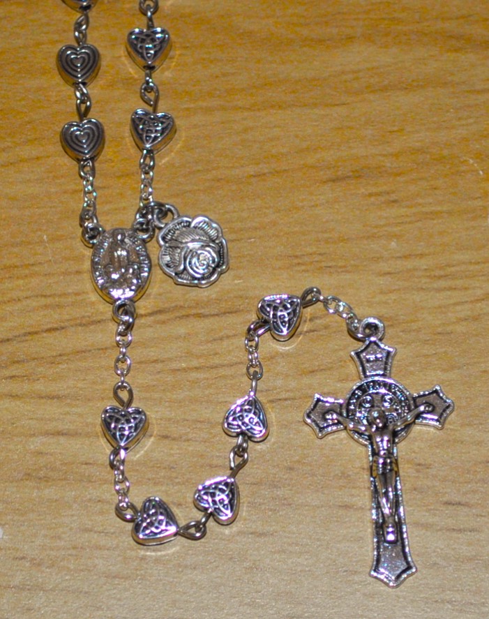 Fatima, Portugal (celtic), Paris, France (flower), Rome, Italy (round), Medjugorje, Yugoslovia (small rose), Lourdes, France (lined heart).