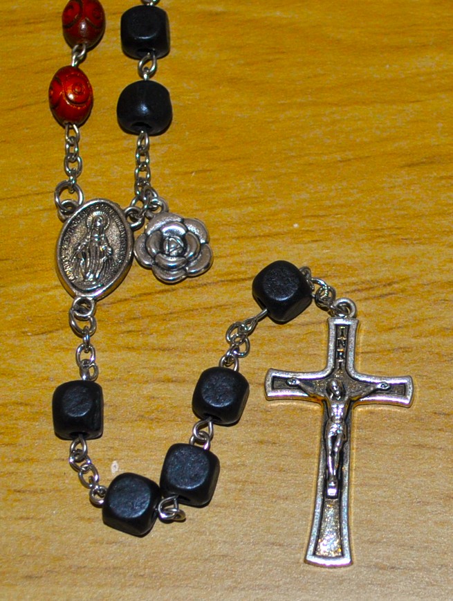 Paris, France (black), Gietrzwald, Poland (round), Fatima Portugal (barrel), Medjugorje, Yugoslovia (rectangle), Lourdes, France (circle).