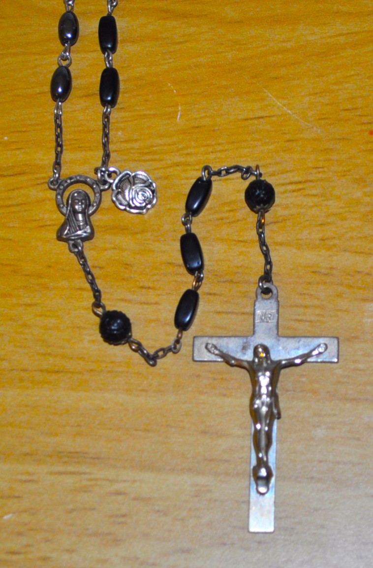 Rome, Italy (wood barrel), Knock, Ireland (round), Paris, France (round hematite), La Salette, France (faceted), Fatima, Portugal (oval hematite).