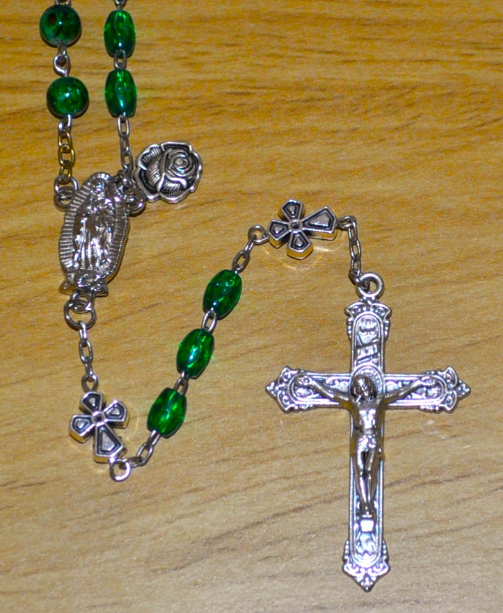 Guadalupe, Mexico (barrel), Rome, Italy (cats eye), Fatima, Portugal (clear), Lourdes, France (crystal), Knock, Ireland (black/green).
