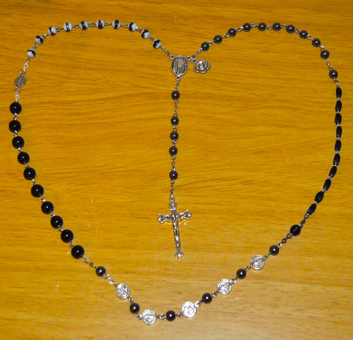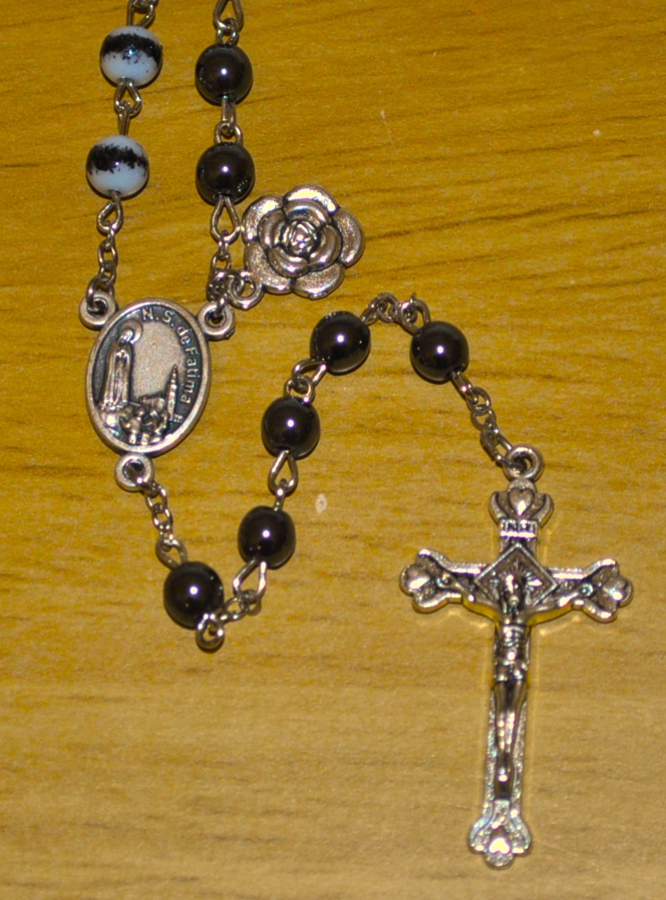 Fatima, Portugal (hematite), La Salette, France (barrel), Paris, France (hematite/coin), Rome, Italy (black), Knock, Ireland (black/white).