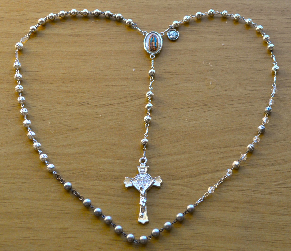Guadalupe, Mexico (flower), Rome, Italy (lined), Gietrzwald, Poland (dark), La Salette, France (filagree), Lourdes, France (capped).