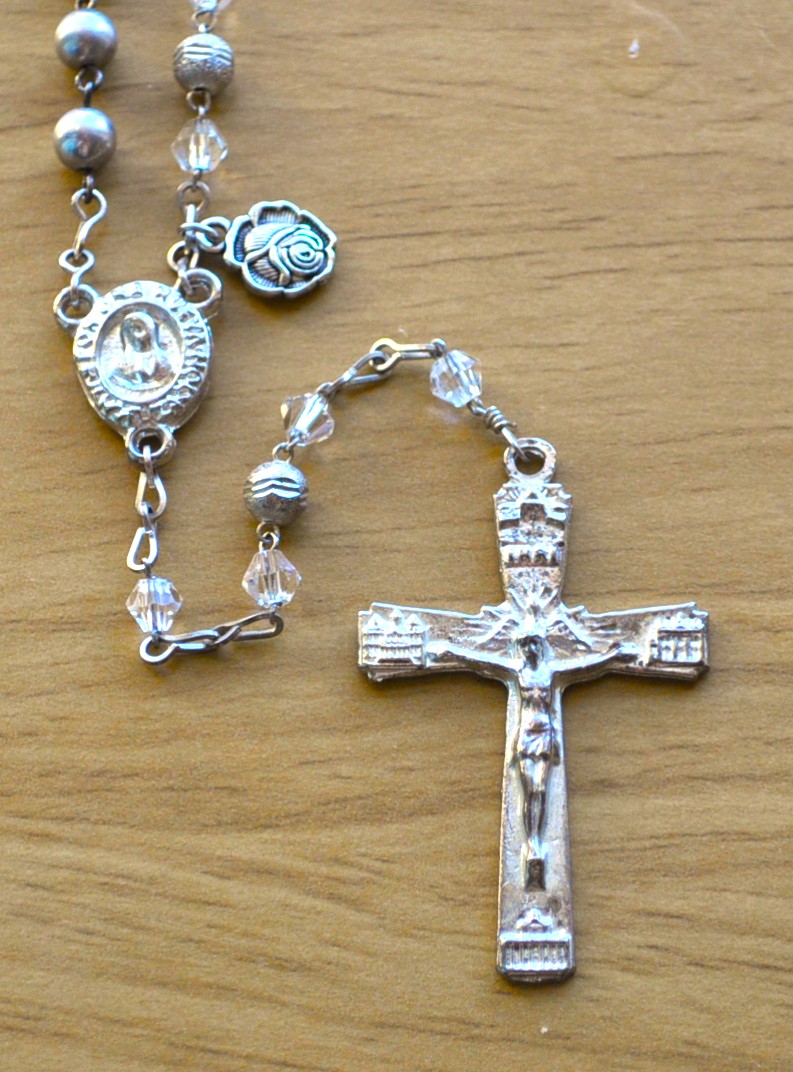 Rome, Italy (lined), Guadalupe, Mexico (flower), Lourdes, France (capped), La Salette, France (filagree), Gietrzwald, Poland (dark).