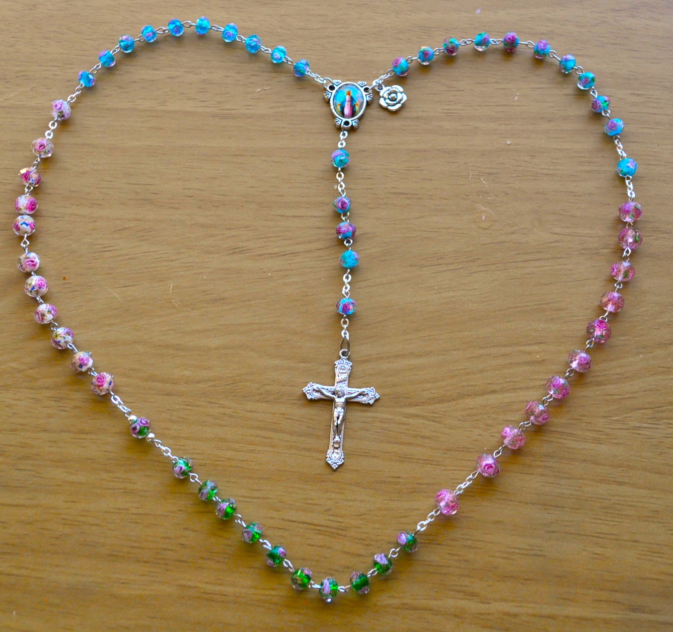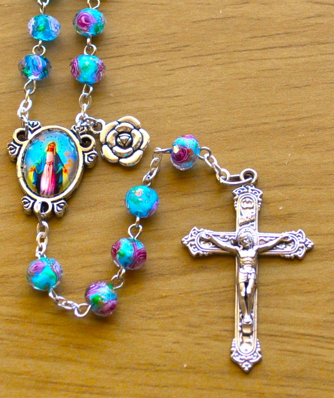 Paris, France (light blue), La Salette, France (pink), Knock, Ireland (green), Medjugorje Yugoslovia (white), Rome, Italy (aqua).