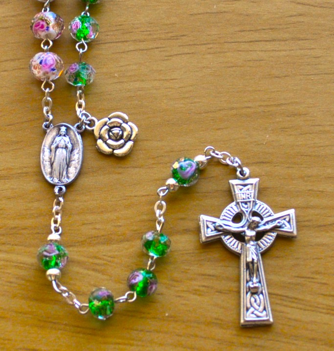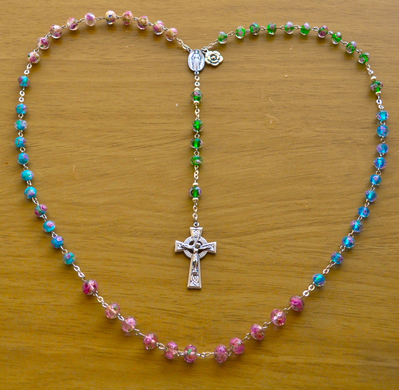 Knock, Ireland (green), Rome, Italy (aqua), La Salette, France (pink), Paris, France (light blue), Medjugorje, Yugoslovia (white).
