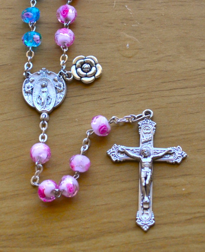 Paris, France (pink), Lourdes, France (navy), Fatima, Portugal (light blue), Guadalupe, Mexico (black), Knock, Ireland (aqua).