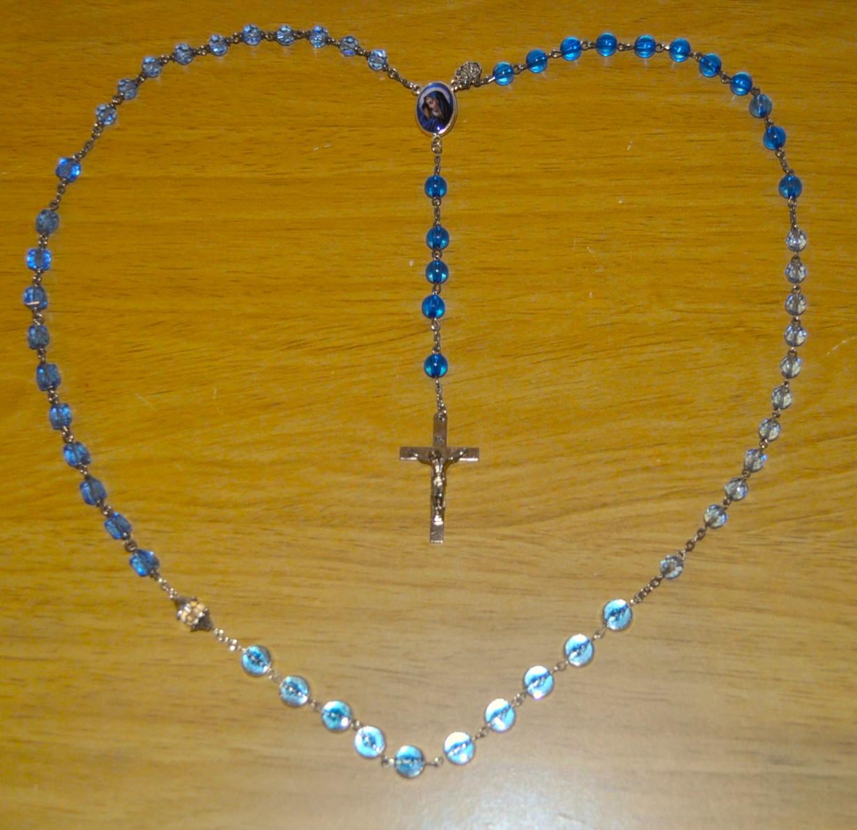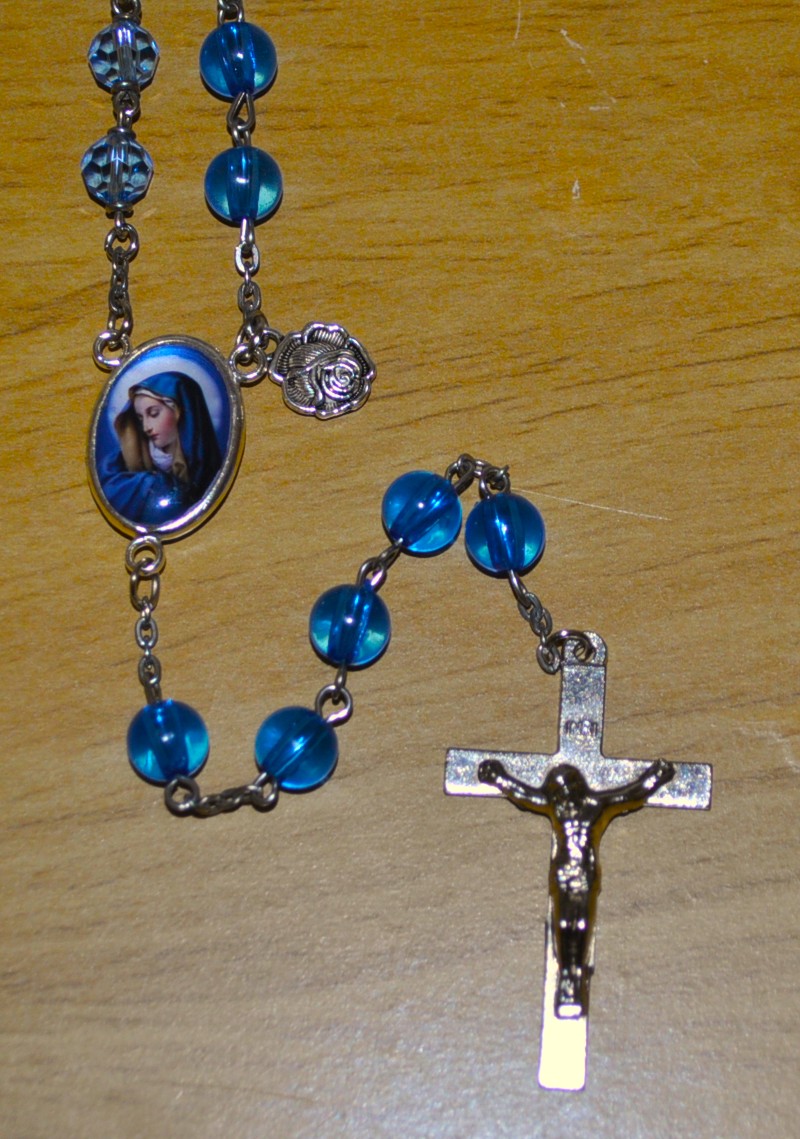 La Salette, France (clear), Lourdes, France (oval), Paris, France (metal), Fatima, Portugal (square), Rome, Italy (capped).
