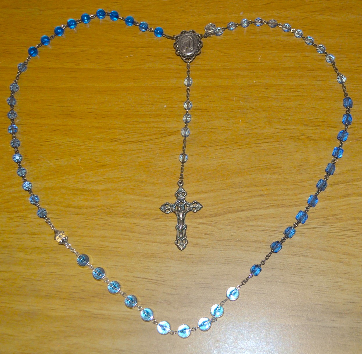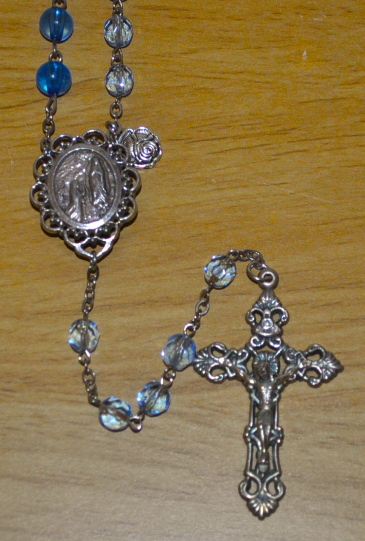 Lourdes, France (oval), Fatima, Portugal (square), Paris, France (metal), Rome, Italy (capped), La Salette, France (clear).