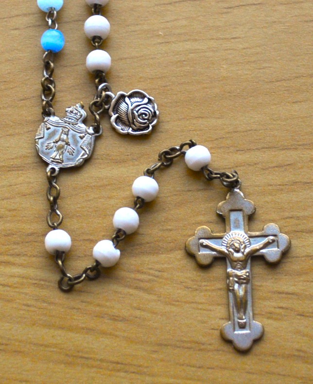 Paris, France (white), La Salette, France (light blue), Lourdes France (dark blue), Fatima, Portugal (green), Rome, Italy (cats eye).