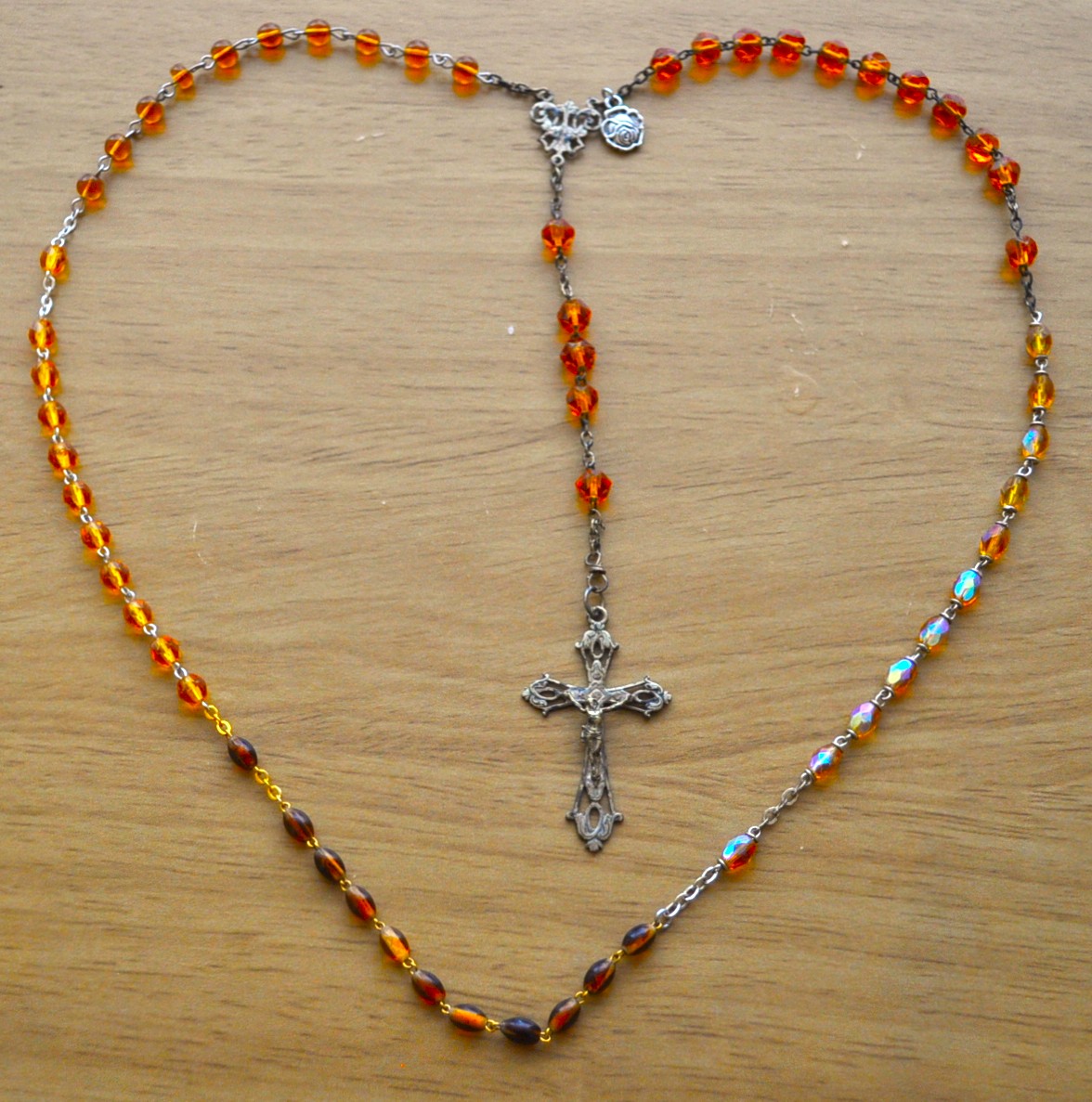 Lourdes, France (large faceted), Paris, France (barrel), Guadalupe, Mexico (cats eye), Fatima, Portugal (faceted), Rome, Italy (round).