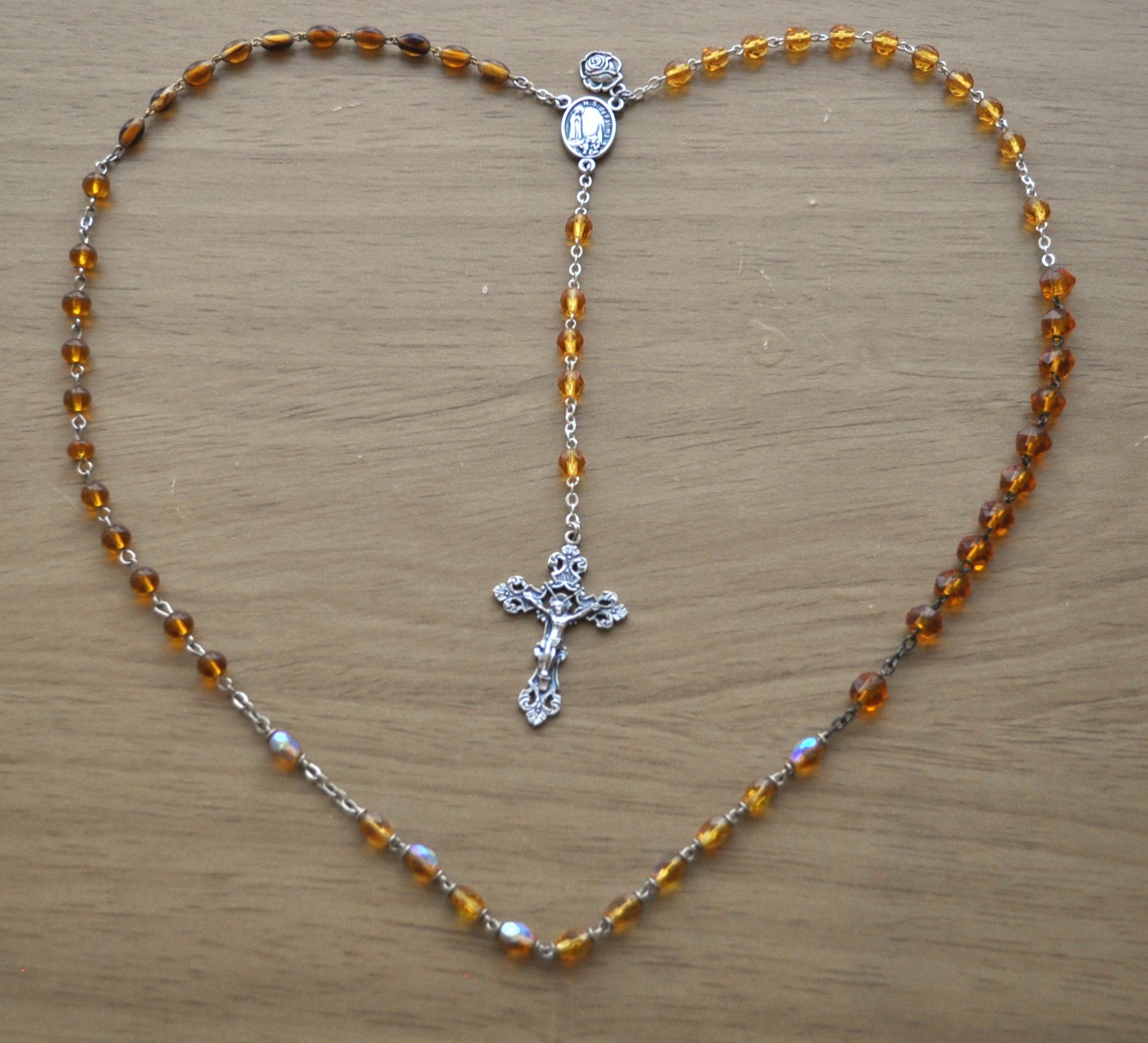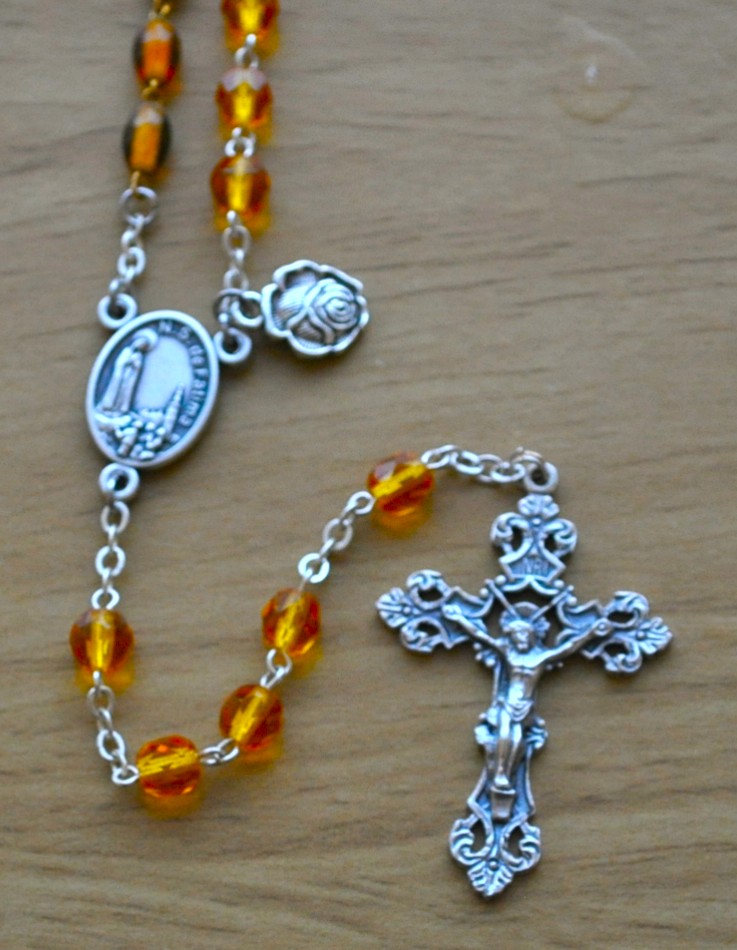 Fatima, Portugal (faceted), Lourdes, France (large faceted), Paris, France (barrel), Rome, Italy (round), Guadalupe, Mexico (cats eye).