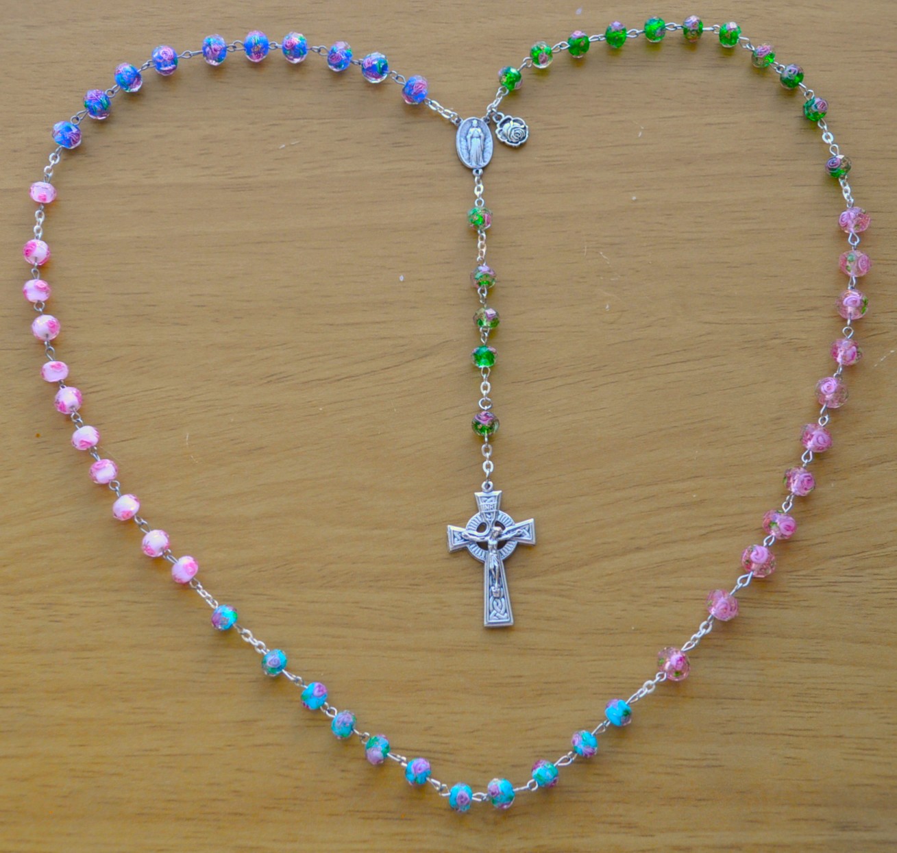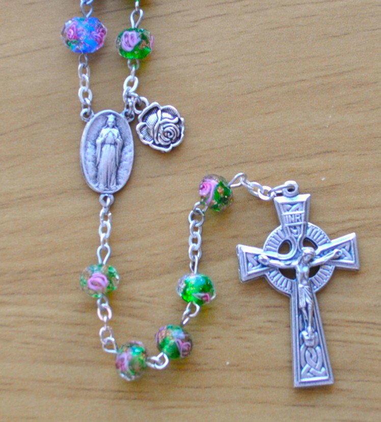 Knock, Ireland (green), Lourdes, France (pink), Fatima, Portugal (aqua), Rome, Italy (white), La Salette, France (blue).