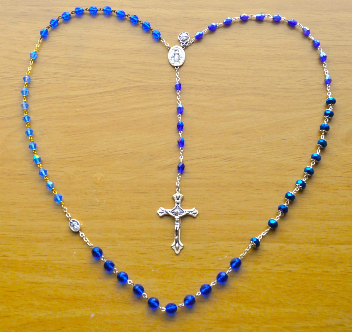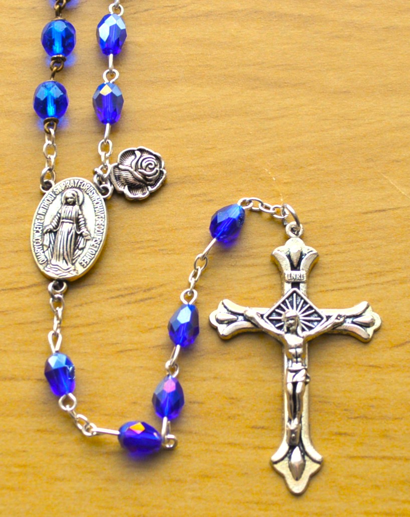 Paris, France (tri cone), Knock, Ireland (oval), Medjugorje, Yugoslovia (large round), La Salette, France (diamond), Rome, Italy (small round).